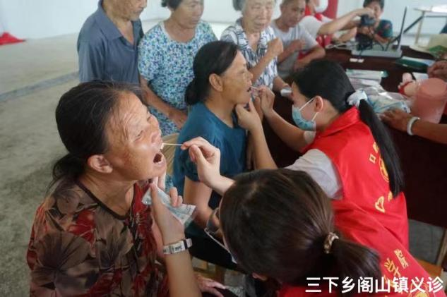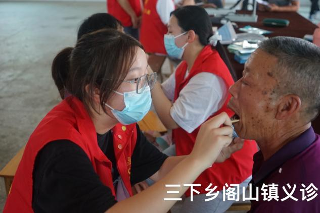 在义诊现场,村民络绎不绝,队员们分工明确,团结协作。宣传组志愿者负责对外进行宣传和发放口腔保健宣传单,让当地村民更加了解我们此次活动的目的。义诊服务志愿者们为当地村民检查口腔卫生健康、测量血压、解答群众提出的各种口腔健康问题。后勤组志愿者们负责协助完成各种突发事件。