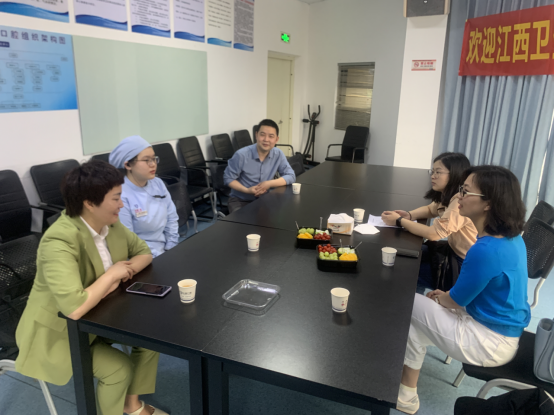 sunbet申慱官网党总支副书记罗志红与江西抚州元邵口腔医疗管理公司、抚州瑞彩齿度口腔门诊部以及福建三明瑞尔口腔医疗集团就毕业生就业推荐、相关领域与学校构建合作模式等方面进行深入探讨。
