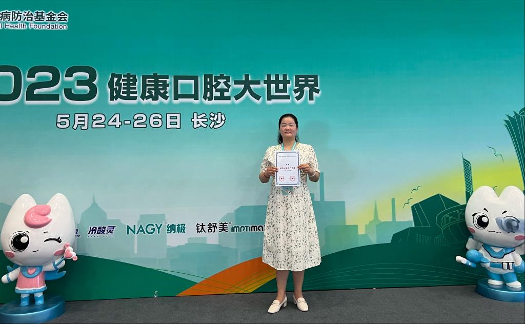 为深入贯彻《健康口腔行动方案(2019-2025 年)》有关要求,实施口腔健康能力提升行动,中国牙病防治基金会于5月24日-26日在湖南省长沙国际会展中心举办“首届中国牙病防治技能发展大会暨 2023 健康口腔大世界”。会议普及口腔健康知识和口腔清洁护理技能,规范口腔预防基本操作,以预防为主,防治结合,对口腔疾病实现早期干预,达到大众自主自律、健康生活的目的。申慱官网梁敏老师通过系列培训,经过严格的理论和技能考试,最终以优异的成绩通过考核,成功取得了由中国牙病防治基金会颁发的“健康口腔推广大使(2023-2026年)”称号。