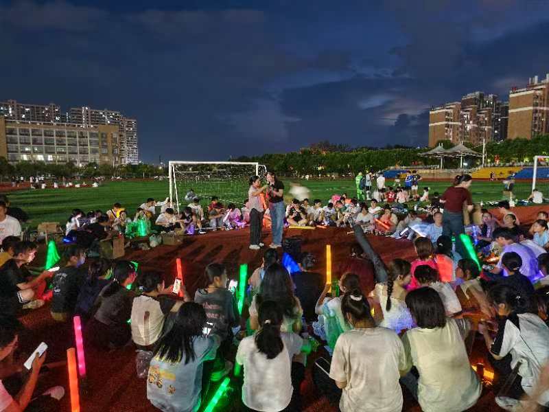 这次的团建活动精彩纷呈,包括弹唱表演、以及你画我猜等7个趣味团队游戏,大家围成一圈,有歌曲表演时,大家跟随节奏挥舞荧光棒的喜悦;有分发零食礼品时的激动;有参加游戏时的跃跃欲试;有吃柠檬大赛结束之后的赞叹不已……笑声回荡在这个圆圈中,织成了一片和谐欢乐的图景。活动从红霞漫天到月明星稀,最后,大家有序离场并带走垃圾,操场整洁如初。