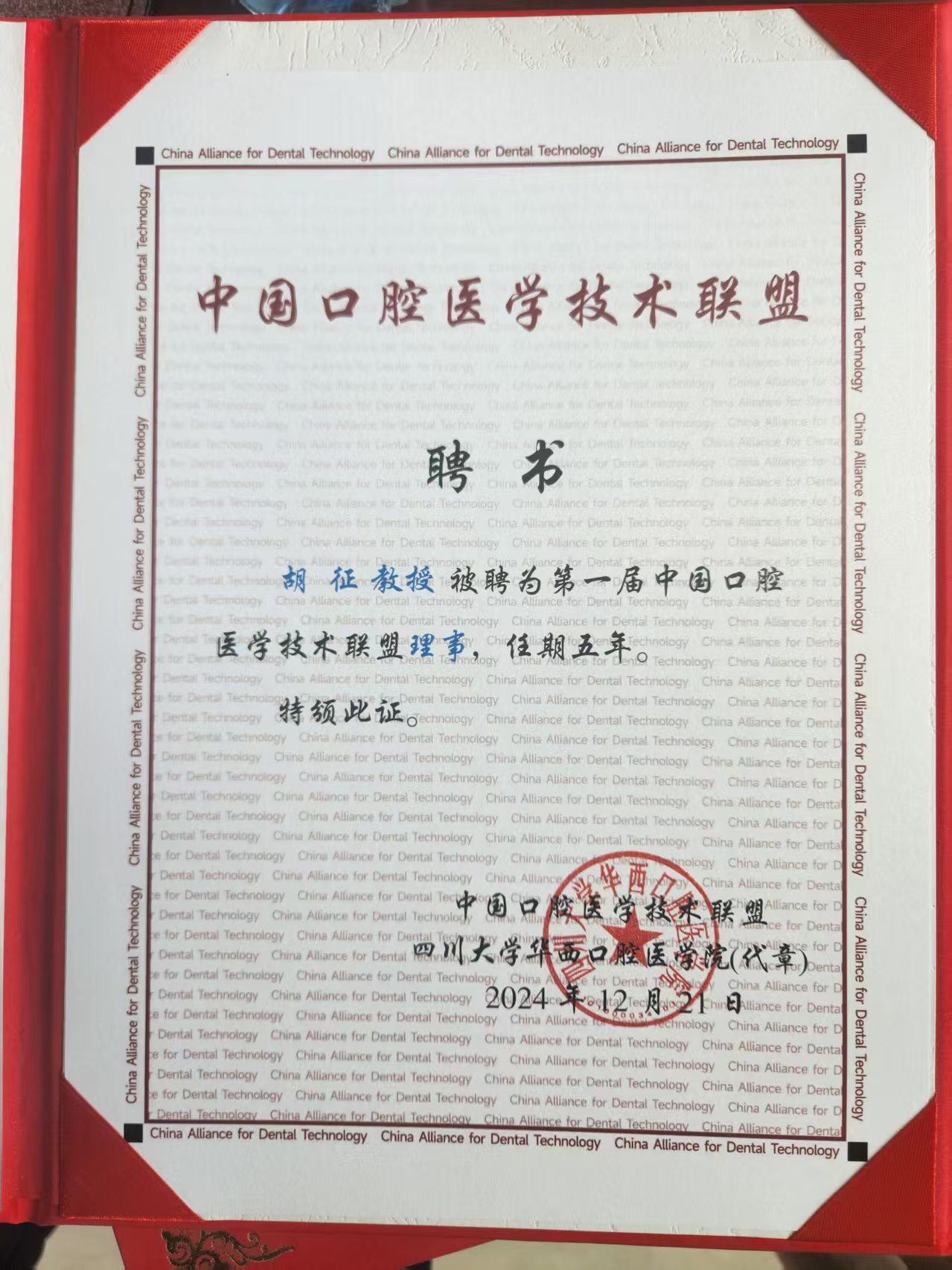 2024年12月20--21日,中国口腔医学技术联盟成立大会在成都举行,口腔医学院副院长胡征、口修教研室主任张弦、口内教研室主任黎秋兰参加了此次会议。