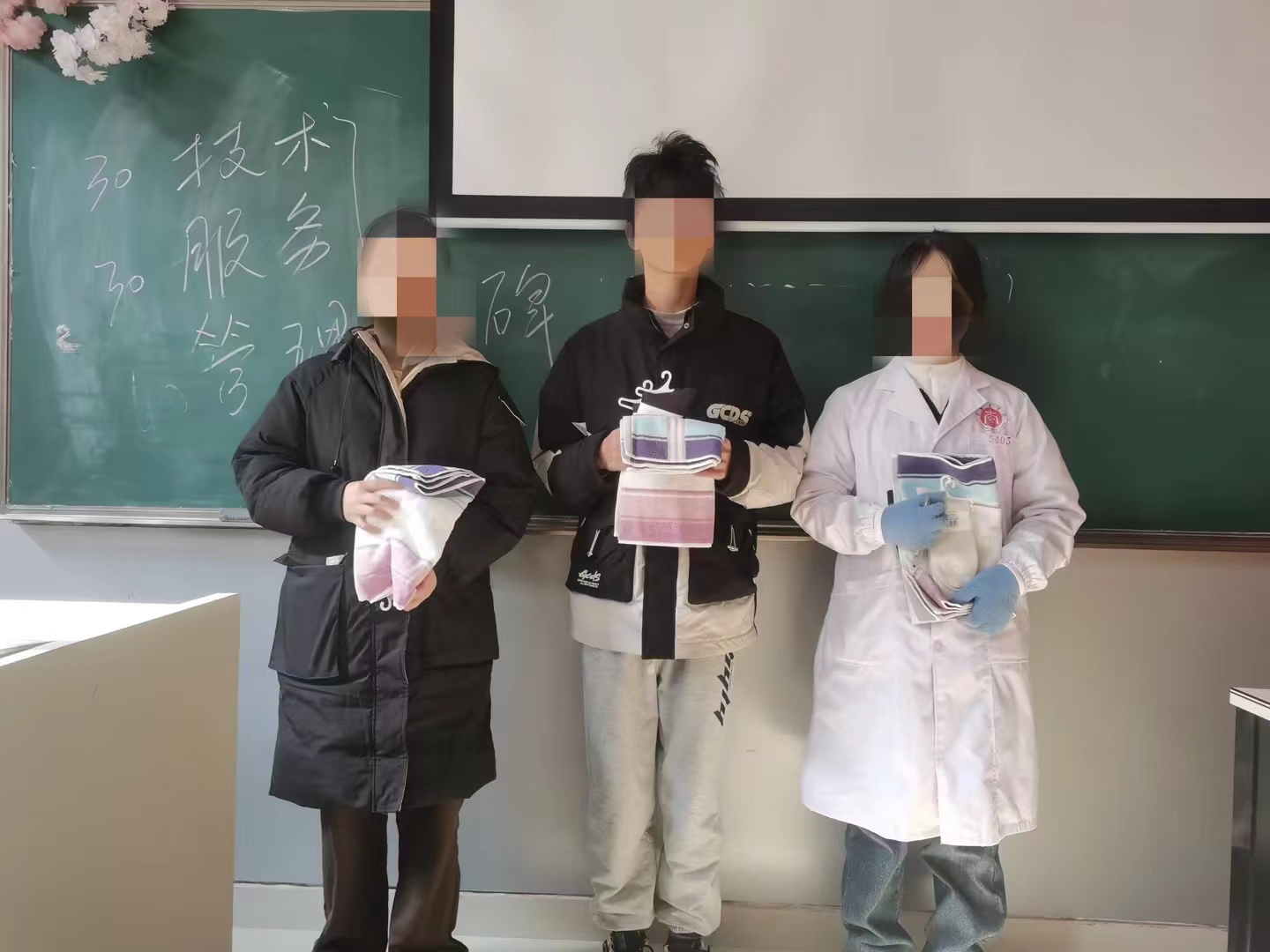 近日,学院辅导员老师们带着暖心物资走进困难学生,亲手将厚实的袜子和柔软的毛巾递到学生手中,那不仅仅是简单的生活用品,更是沉甸甸的关爱与期望。这些看似平常的物件,却在寒冬中给学生们带来了关怀、带来了温暖。