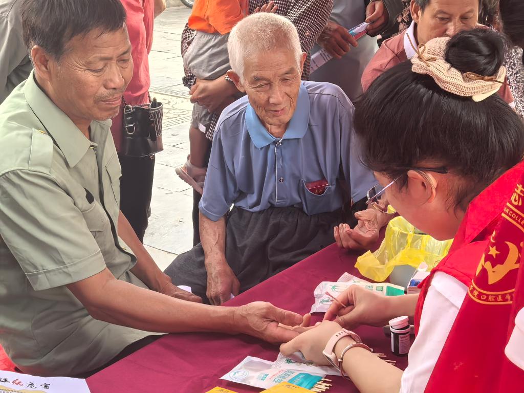 社会实践队走进黄坳乡客家集市开展健康宣教活动,为村民提供口腔健康检查、血压血糖测量等基础医疗服务。切实将健康关怀送到村民身边,让便民惠民的医疗服务浸润民心,以实际行动为乡村健康事业发展贡献力量。