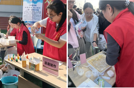 活动以“融合专业、实践、文化与趣味”为核心主题,聚焦口腔医学专业教育、劳动精神培育、中华文化传承及师生互动交流,吸引全校师生积极参与,现场氛围热烈。展示以集章兑奖机制展开,参与者在义诊区享免费口腔检查与健康科普、在知识答题区闯关学护齿知识、在静品茶区感受茶文化、在漆扇制作与 “齿” 艺彩绘区发挥创意、在古韵投壶区体验传统游戏,各环节完成后可集章兑换香囊、护齿用品、生活用品等丰富奖品,沉浸式体验兼具专业性与趣味性。
