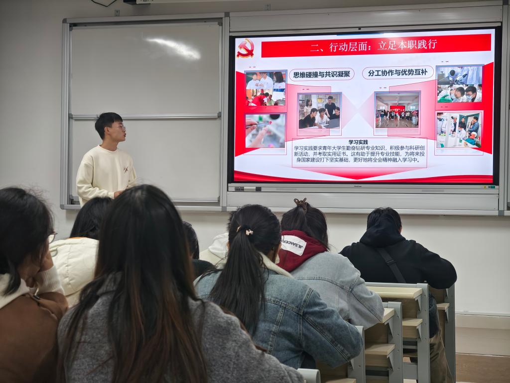 此次专题学习活动立足专业特色、强化学用结合,有效深化了学习成效,提升了同学们的政治认同与责任意识。大家纷纷表示,将持续深化对党的二十届四中全会精神的学习领悟,以“有理想、敢担当、能吃苦、肯奋斗”的新时代青年标准严格要求自己,在自身专业领域深耕细作,为强国建设、民族复兴贡献青春智慧与力量。