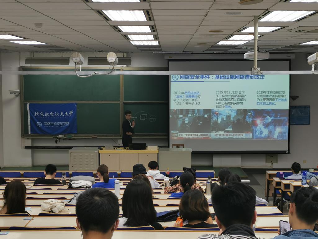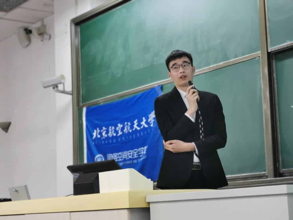 为普及网络安全知识,提高同学们网络安全意识和防范水平,9月23日下午,必赢242net官网分团委网安宣讲团来到北京学院开展网络安全宣传活动。本次宣讲面向北京学院18级160名同学,主讲人是必赢官网17级本科生张舟。张舟大量运用视频等多媒体材料进行试验,充分带动了现场气氛,激起了同学对网络空间安全的兴趣,圆满完成了相关任务,得到了比较好的反馈。