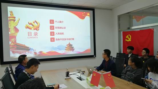 学生党支部书记战姝宇主持会议。她介绍了一名合格党员的基本素养以及身为党员的责任和义务,并要求答辩秉持客观、公正的原则全面考量。