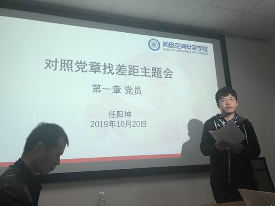 首先,四位学生党支部书记分别进行了党课讲授。战姝宇同志以“不忘初心、牢记使命”为背景,结合学院“固网空天,紧盯前沿,创新机制,引领一流”的指导思想,号召党员同志积极利用学科优势,肩负起推进网络强国建设的时代使命。陈晨同志从是什么、为什么、怎么做三个方面详细讲述了共产党人的初心和使命,并用党员模范林俊德的光荣事例激发起党员同志对热爱祖国、忠于事业的无私奉献精神的深入思考和感悟。