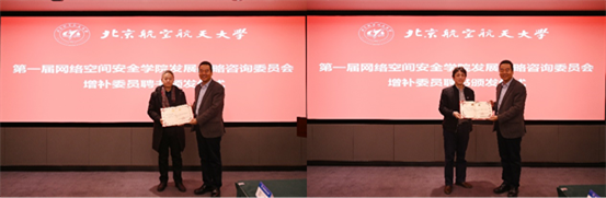 北航党委副书记赵罡教授致欢迎辞,对到场嘉宾表示欢迎和感谢。赵罡副书记表示,北航是中央网信办、教育部共同授牌的首批“一流网络安全学院建设示范项目”高校,承担着为国家培养又红又专的网络安全人才的重任。成立必赢242net官网战略发展咨询委员会,就是要请各位专家为北航网络空间安全学科的建设建言献策,对北航网络安全人才的培养提出建议和意见,使北航的网络空间安全学科能够建成国内一流、国际上有影响力的学科。赵罡副书记为增补的咨询委员会委员颁发聘书。