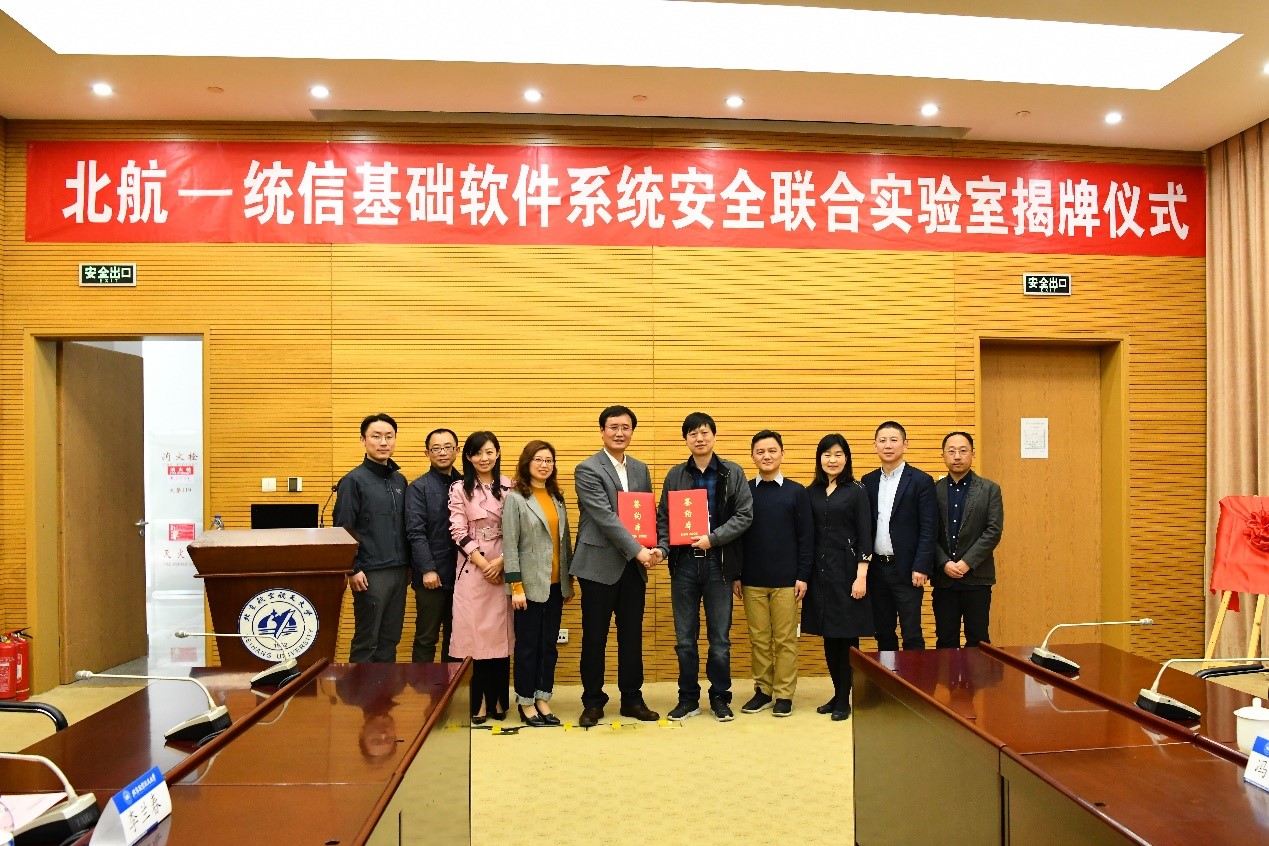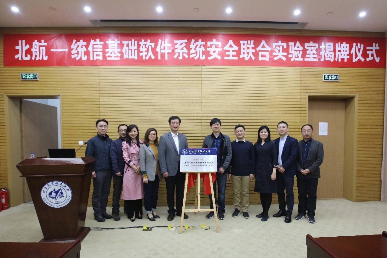 4月12日上午,必赢242net官网必赢242net官网(简称:北航必赢242net官网)与统信软件技术有限公司(简称:统信软件)共建“北航—统信基础软件系统安全联合实验室”揭牌仪式在必赢242net官网成功举行。北航必赢242net官网院长刘建伟、党委书记蒋燕玲、副书记祝贺、副院长伍前红、副院长白琳、统信软件总经理刘闻欢、高级副总经理张磊、副总经理许可、副总经理令狐永兴、人力资源总经理武红伟等领导出席并见证本次揭牌仪式。