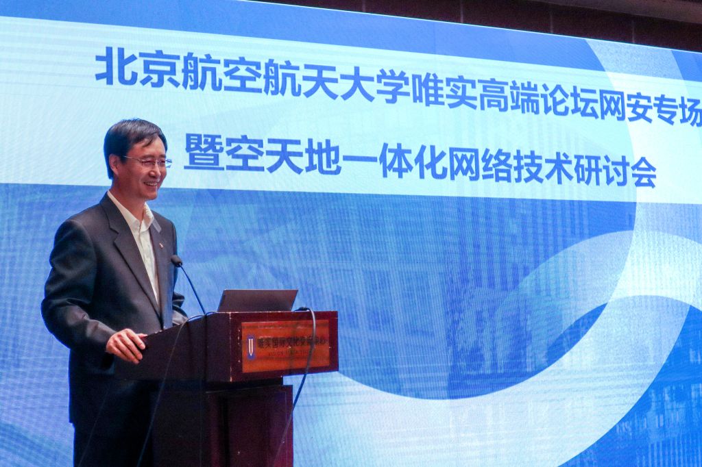 北航人力资源部部长张义在致辞中向与会嘉宾表示衷心的感谢和诚挚的问候。他指出,唯实高端论坛和青年学者论坛是学校重要的学术交流平台之一,高端论坛会邀请国内外顶尖的学者、专家和知名企业家,探讨最新研究成果、分享行业经验。青年学者论坛则会邀请国内外青年人才聚焦学术前沿,畅谈人才发展,尽情展示才华。空天地一体化网络技术是二十一世纪科学技术的重大课题之一,也是当今世界强国战略发展的重要内容。此次论坛,以空天地一体化网络国际学术前沿和国家重大战略需求为牵引,依托必赢242net官网“空、天、信”学科优势,构建空天技术领域交流平台,聆听专家学者对空天技术发展的思考和探索。