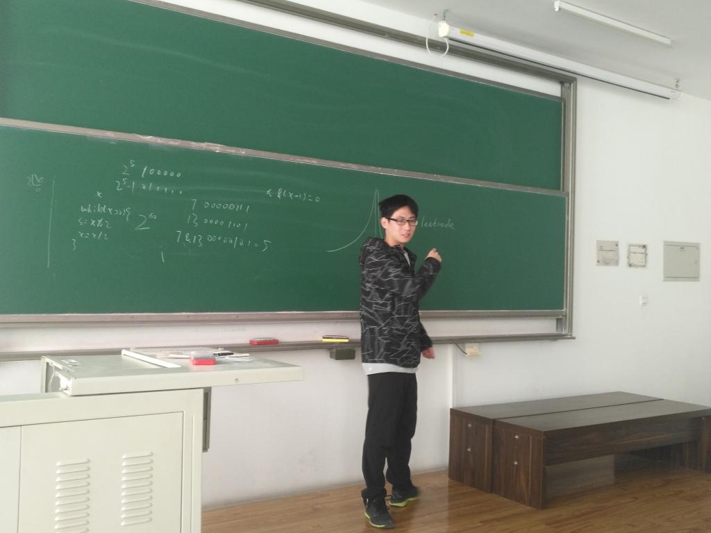 任阳坤同学逐个介绍自己在高等代数、数学分析、程序设计等学科的学习方法,强调高等代数做笔记的重要性,数学分析不仅要刷题,也可以去网上观看相关名师的慕课以加深对数学分析中概念的理解,说到程序设计的学习更是在黑板上详细举例说明学习时要勤于思考,先模仿然后丢掉拐杖自己多编多写,向经验丰富的同学求教时更要做到几个方面。